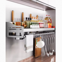 厨房多功能置物架壁挂式架子免打孔家用调料品调味料不锈钢收纳架
